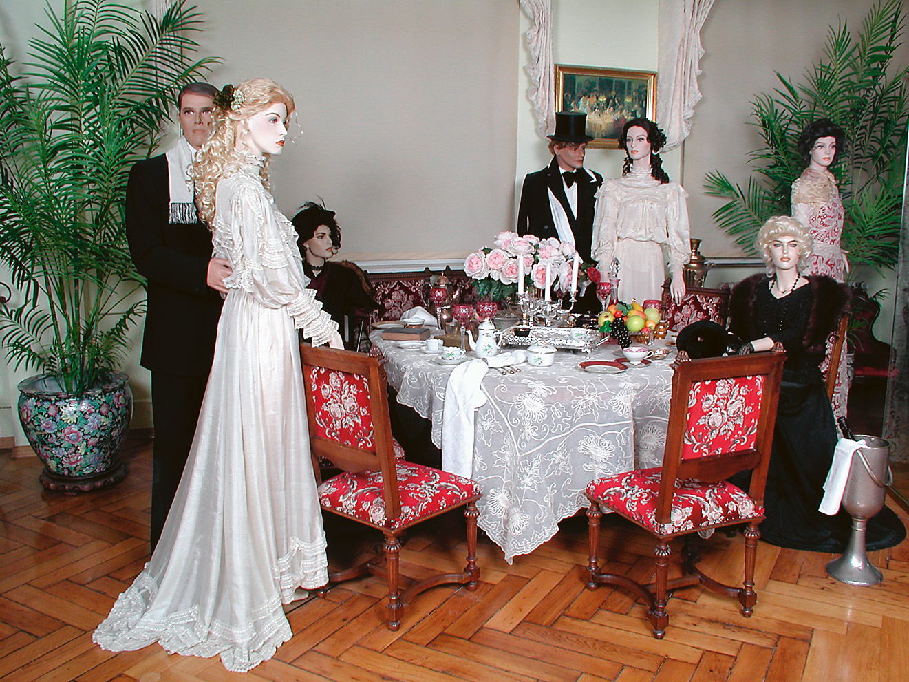 Historische Moden im Museum Wilhelmsbau: Die Ausstellung spannt einen weiten Bogen von der Gründerzeit der zweiten Hälfte des 19. Jahrhunderts über die sich daran anschließende Epoche des Jugendstils bis in die 1950er Jahre. Viele der Moden sind auf Künstlerpuppen dekoriert, die so lebensecht wirken, daß man glaubt, sie müssten sich jeden Moment durch den Raum bewegen. In den liebevoll gestalteten Vitrinen werden darüber hinaus zeitgenössische Accessoires, Schmuck und viele Gegenstände des bürgerlichen Alltags gezeigt, die dem Besucher einen Gesamteindruck vom Lebensgefühl der jeweiligen Zeit vermitteln. Dateityp: JPG-Datei (Bild) Auflösung: 1772 × 1329 Pixel Upload: 01.06.2015 -